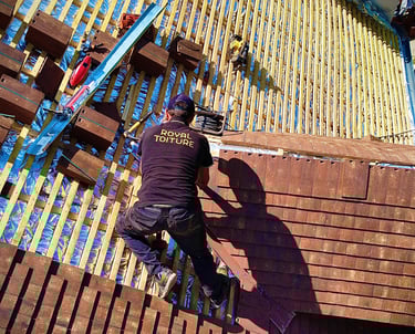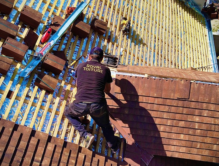 Nous intervenons sur tout types de toitures ( tuiles, ardoises, zinc, toit terrasse, balcon etc..)